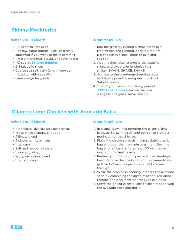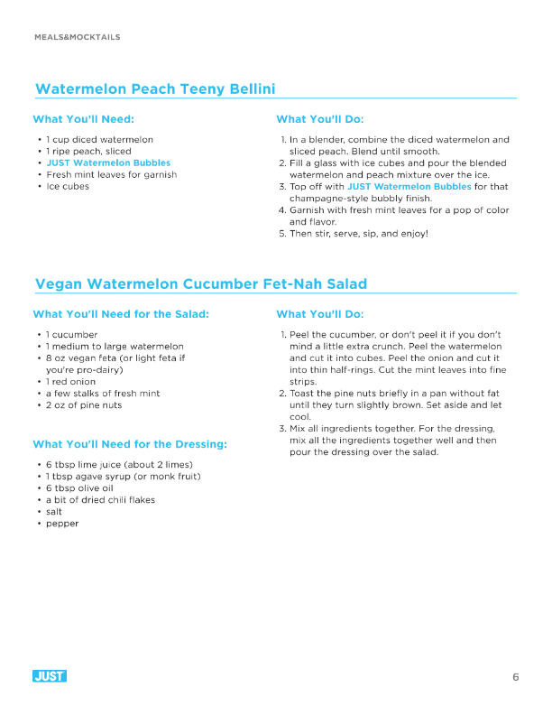 JUST Water, Meals and Mocktails Recipe eBook Campaign